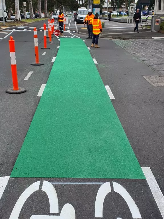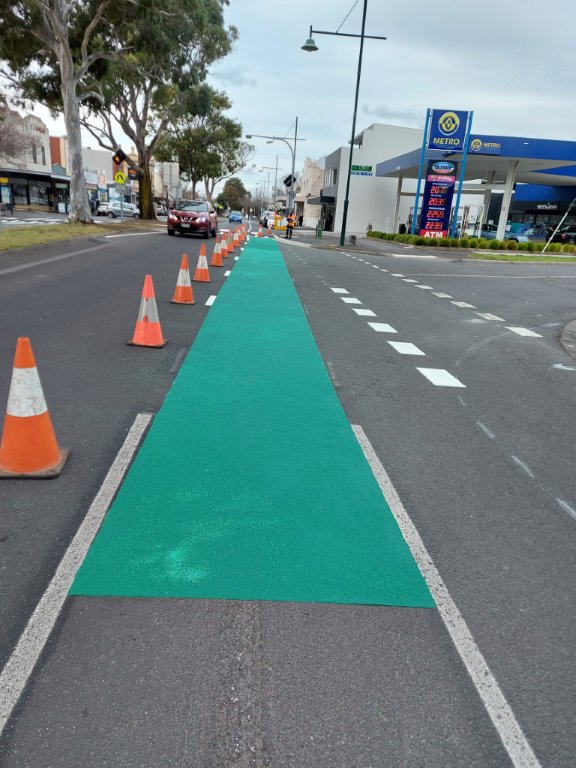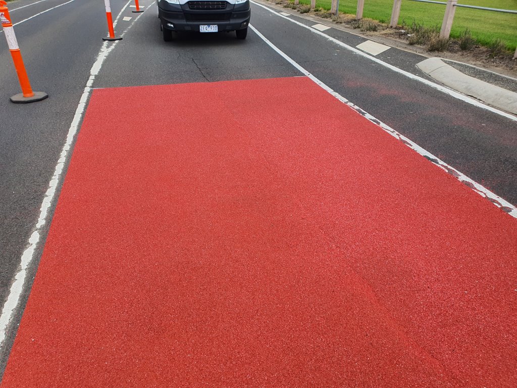 our aim is to be one of Australia's best in the road coatings industry, with over 50 years combined experience we understand what it takes to do the job right he first time , with virtually no need to return to clean up , our impregnation system means we have literally no waste at all (the picture to the right shows just how clean our work is with no need for street sweeping to remove excess glass and aggregate, unlike our competition, our system will not fill drains and curbs with waste glass and aggregate ,